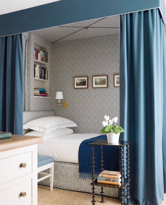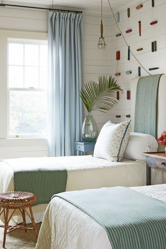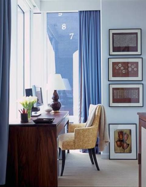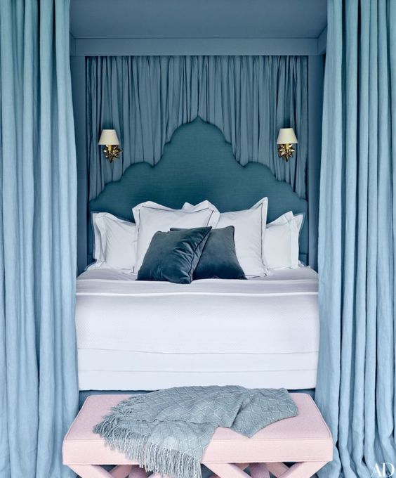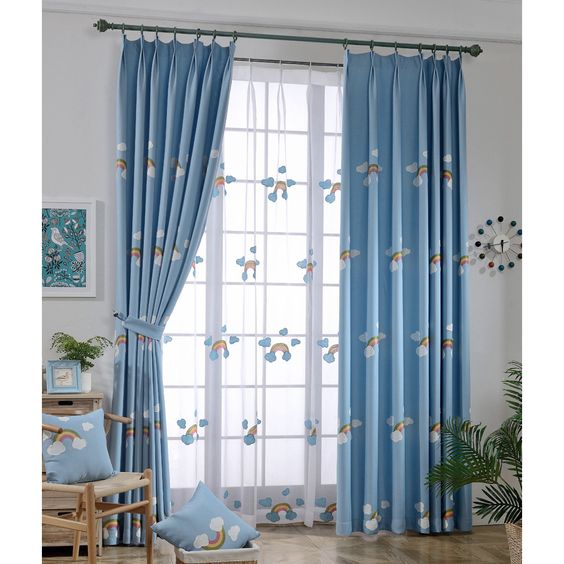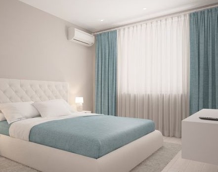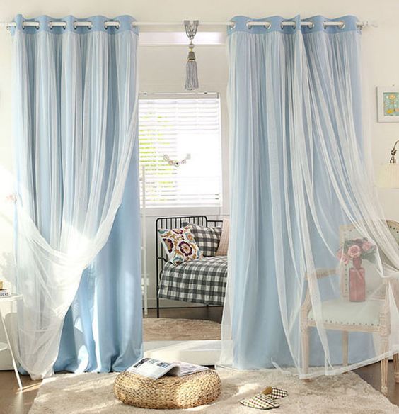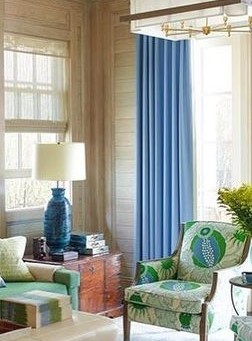 ติดตั้งผ้าม่านสีฟ้า: ผ้าม่านสีฟ้าและสีอื่นๆที่มีโทนฟ้าเป็นกลุ่มสีที่ทำให้บรรยากาศห้องดูสว่างสบายตา สร้างฟิวล์ Relax ผ่อนคลาย เหมาะกับห้องนอนและสถานที่ที่ใช้พักผ่อน ผ้าม่านสีฟ้าสามารถติดกับห้องที่มีผนังสีขาว สีออฟไวท์ สีฟ้าพาสเทล สีเทา สีน้ำเงิน เป็นต้น ไม่ว่าจะติดผ้าม่านแบบพื้นสีฟ้าหรือมีลวดลายสีฟ้า การได้เห็นสีฟ้าเป็นประจำจะช่วยให้เราผ่อนคลายได้อย่างเต็มที่ ร้านผ้าม่าน พาหุรัด แฟบริค พลัส มีผ้าตัดม่านโทนสีฟ้ามากมาย สั่งผลิตเอง ขายส่งตรงให้ลูกค้า ราคาประหยัด การติดผ้าม่านสีอ่อนสามารถลวงตาให้ห้องดูใหญ่กว่าความเป็นจริงได้ ผ้าม่านสีฟ้าจะมีหลายเฉด มีสีฟ้าอมเขียว สีฟ้าพาสเทล สีฟ้าเข้ม สีฟ้าทะเล สีฟ้าอ่อน สีเทาอมฟ้า สีฟ้าคราม เป็นต้น รูปภาพต่อไปนี้เป็นคอนเซ็ปต์บรรยากาศห้องที่ติดผ้าม่านสีฟ้า ดูสวยงามลงตัวทีเดียว (โปร่งคลิกบนภาพเพื่อชมรูปแบบเต็มจอ)